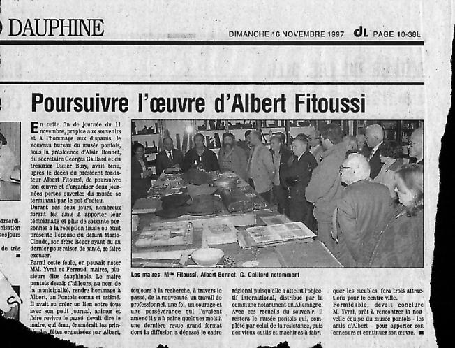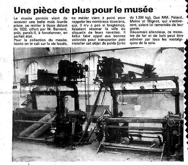 --------------------- Début de Communiqué --------------------- Le Musée-Pontois s'affiche sur l'Internet ! Parler du passé, en garder les traces, les rendre accessibles et disponibles reste l'oeuvre du présent. L'équipe du bureau de l'association, usant des moyens de son temps, vous permet de parcourir un choix des richesses qu'il contient: Cartes postales et photographies anciennes, documents et textes historiques de référence. Tout ceci, maintenant consultables, depuis chez vous, sur votre ordinateur, vous fera remonter le temps ou ravivera vos souvenirs. Retrouvez- les sur http://pont-de-beauvoisin.com Vous y trouverez également des informations diverses, géographiques et pratiques qui replacent les buts et les actions du Musée Pontois dans son contexte local : La vie quotidienne à Pont de Beauvoisin. ------------------- Fin de communiqué --------------------- |